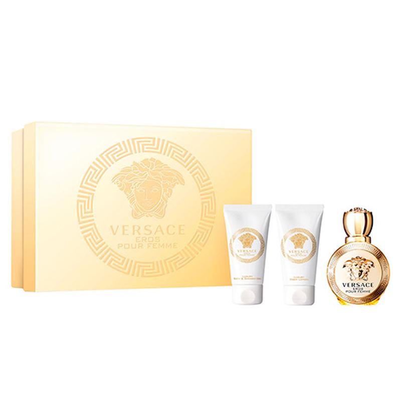 Versace Eros Pour Femme 5 мл + Versace Eros Pour Femme Bath&Shower Gel Гель для душу 25 мл + Versace Eros Pour Femme Luxury Body Lotion Лосьйон для тіла 25 мл Класифікація аромату: деревні, квіткові, мускусні.Верхня нота: гранат, бергамот, лимон.Нота "серця": квітка лимона, жасмин, півонія