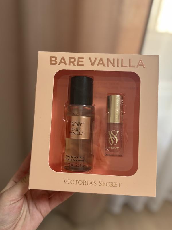 Набір bare vanilla від Victorias Secret. В набір входить спрей 75 ml та блиск для губ в карамельному відтінку. Дуже гарний варіант подарунку. Аромат -ваніль та кашемір ,солоденький приємний аромат.