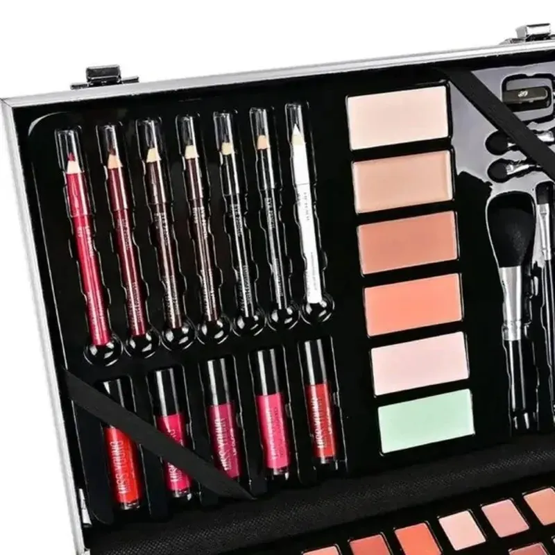 Створіть бездоганний образ з повним набором косметики в стильному кейсі! Все необхідне для макіяжу завжди під рукою — вдома або в дорозі. Переваги: Повний комплект косметики. Зручна організація. Підходить для всіх типів шкіри. Широка палітра відтінків. Компактний і міцний кейс. Гіпоалергенні продукти. Легкість транспортування. Опис: Набір для макіяжу — це ідеальний вибір для створення професійного макіяжу в домашніх умовах. У стильному і компактному кейсі зібрано все необхідне: тіні для повік, блиски, рум'яна, пудра, пензлі та аплікатори, що забезпечують легкість нанесення. Кейс оснащений відділеннями, які допомагають зручно організувати косметику і легко знаходити потрібні продукти. Цей косметичний набір підходить для різних типів шкіри і включає палітри з різноманітними відтінками, що дозволяє створювати як повсякденні, так і вечірні образи. Якісні пігменти гарантують стійкість макіяжу протягом всього дня. Компактний розмір кейса робить його зручним для зберігання вдома або для перевезення в подорожі. Характеристики: Тип товару: повний набір косметики для макіяжу / подарунковий набір косметики Комплектація пензликами: Пензель для тіней, Пензель для розтушовування тіней, Пуховка, Спонж, Пензель для нанесення контурів Кількість кольорів тіней у наборі: 66 Кількість відтінків рум'ян у наборі: 4 Кількість кольорів помад у наборі: 5 Кількість кольорів коректорів у наборі: 6 Розмір, см: 30х21х6,5 Колір: Рожевий Гіпоалергенно: так Комплектація: Рум'яна - 4 шт Тіні для повік - 66 шт Олівець для очей - 3 шт Олівець для губ - 3 шт Блиск для губ - 5 шт База під макіяж - 6 шт Точилка Пензлики - 5 шт Упаковка