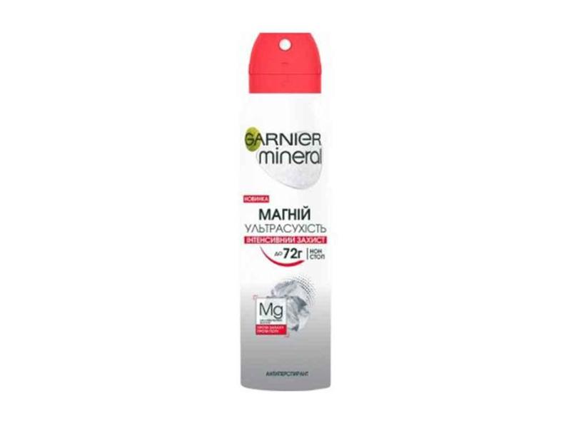Антиперспірант Garnier Mineral Магній Ультрасухість — наш перший дезодорант- антиперспірант із новим основним активним інгредієнтом натурального походження — Магнієм! Магній має ультраабсорбувальні властивості та вчетверо краще вбирає вологу, ніж тальк.