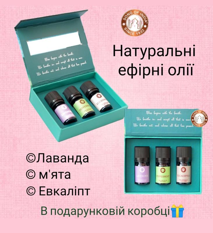 Набір ефірних олій дихання 3 шт. по 5 мл у подарунковому пакованні лаванда, м'ята, евкаліп...