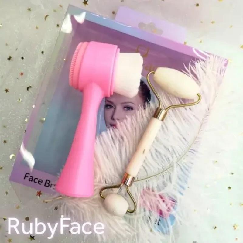 Набір 2в1 нефритовий ролик та двостороння щіточка для обличчя