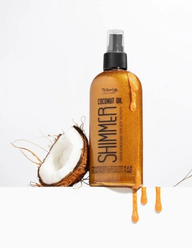 Кокосова олія для засмаги з шиммером top beauty coconut oil shimmer 200 мл
