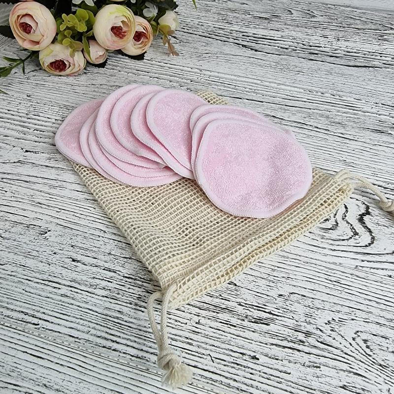 Набор многоразовых бамбуковых дисков для очищения лица розовые 12 шт.+мешочек