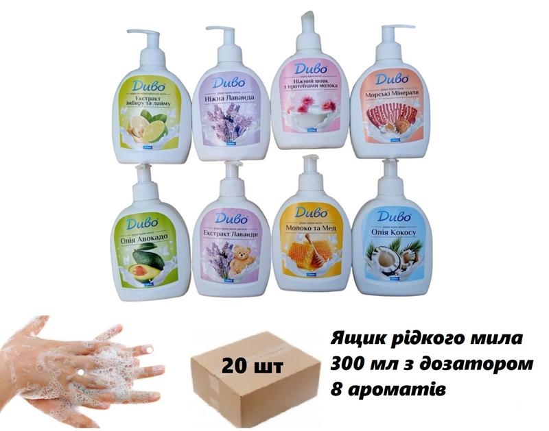Ящик рідкого крем-мила з дозатором (300 мл, 8 видів, 20 штук)