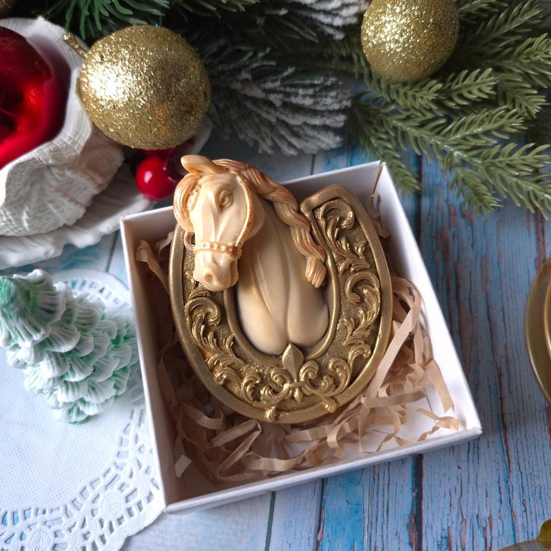 Мыло ручной работы, размер 8*6*1,4, вес 50г Аромат цитрус и шоколад Упаковка в пакетик Возможно упаковать в коробочку 8*8*3,5 +10грн Набор лошадь + елка в коробке- 100грн