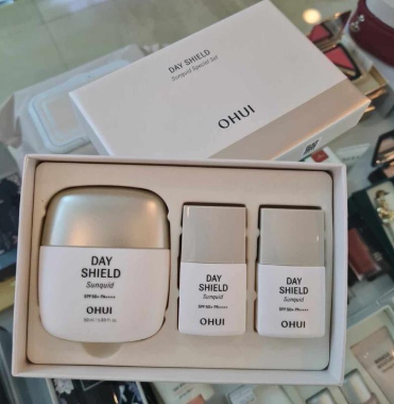 Люксовый набор солнцезащитных лосьонов ohui day shield sunquid special set, 50 мл +13 мл +...