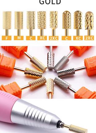 Фреза твердосплавная реверсивная универсальная золотистая для маникюра и педикюра - серия xdj
