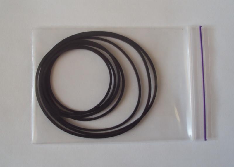 Комплект пасків для магнітоли Panasonic RX-CW200L Складається з 7-ми одиниць 115х1,2х1,2 - 2шт 75х1,2х1,2 - 2шт 55х1х1 - 2шт. 65х1х1 - 1 шт. (лічильник)