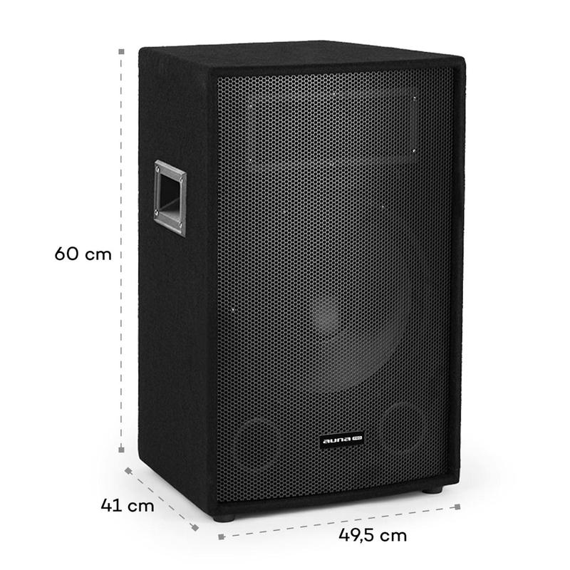 Характеристики динаміка: З'єднання: 1 x 6,3 мм джек і затискачі типу «крокодил» Зносостійке килимове покриття Подвійна фазоінверторна система Вихідна потужність: 300 Вт Пікова потужність: 600 Вт П'єзорупор для високих і середніх частот імпеданс. 8 Ом Частотна характеристика: 30 Гц - 20 кГц Рівень звукового тиску: 1 Вт/1 м 92 (±2 дБ) Максимальний рівень звукового тиску: 121 дБ Обсяг постачання: 2 колонки Габаритні розміри: Розміри сабвуфера: приблизно 55 x 60 x 41,0 см (ШxВxГ) Розміри гучномовця: приблизно 41,5 x 60,5 x 34 см (ШxВxГ) Розміри підставки для динаміків: приблизно 77 x 126-190 x 70 см (ШxВxГ) Вага: приблизно 37,5 кг