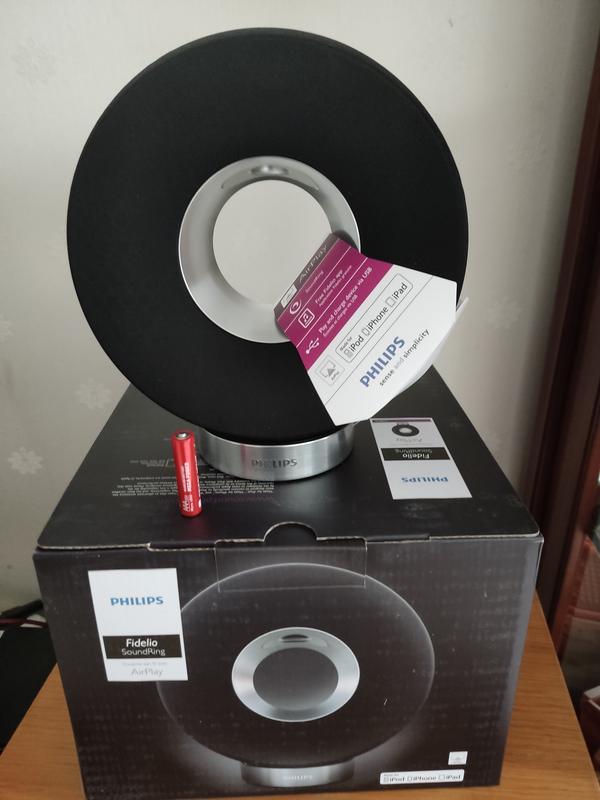 Дизайнерская колонка топовой линейки Philips Fidelio. Модель SoundRing Без блютуз!!! Только wifi для техники Apple в т.ч. Ipod работает через AirPlay, для техники Android через приложение AirMusic либо через шнур. Работает от сети когда стоит на подставке или от аккумулятора если снять с подставки. Колонка имеет роскошный дизайн, качественное исполнение и великолепный звук на уровне hifi техники. Вес колонки около 2 кг. На момент начала продаж стоила 250-300 дол. *************************************************************************** Обзор: ************************************************************** Возможен вариант проводного подключения 2х штук как правая и левая. Отлично подойдёт на подарок. Абсолютно новые в коробке, перед отправкой проверяю на работоспособность.