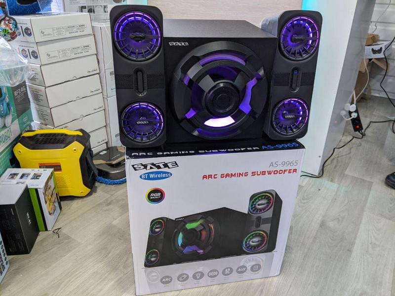 КОД ТОВАРУ-06330188 Акустична система фірми "SATE" ATE-HDM I ARC Оптичний вхід Bluetooth MOQ сабвуфер. Мультимедіа 2.1 Динамік AS-ARC92 ТЕХНІЧНІ ХАРАКТЕРИСТИКИ - R.M.S.: 80 Вт (40 Вт + 20 Вт * 2) - Частотний діапазон: 40 Гц ~ 20 кГц - Вхідний опір: 10 кОм - Вхідна чутливість: 450 мВ - Співвідношення сигнал/шум: 70 дБ - THD 0,5% (Fo = 1 кГц, 1 Вт) Sub: W170*L170*H340 Сб: W105*H300*D125 - Електроживлення: ~ 110-220 В