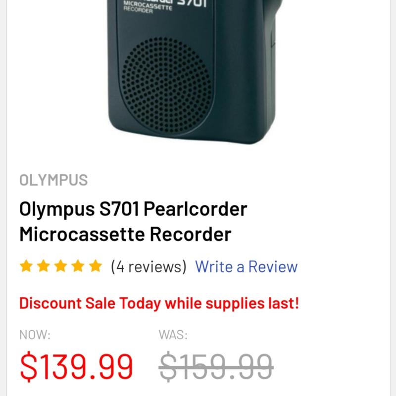 мікрокасетний диктофон Olympus S-701 є демонстраційним виробом класу A-1. Цей компактний диктофон із елегантним покриттям чудово підходить для тих, хто користується ним вперше. Диктофони нові, лише коробки затерті часом. всередині нові диктофони, касети запаковані герметично, нові. Його невеликий розмір означає, що ви можете використовувати його вдома чи в дорозі, він має вбудований мікрофон для чистого звуку та подвійну швидкість запису для бажаної гнучкості. Цей апарат використовує мікрокасети. один набір має 3 касети, інший має одну касету. Ціна 1400 за диктофон з трьома касетами та 1100 грн за диктофон з однією касетою. особливості Подвійна швидкість запису дає вам до трьох годин запису на 60-хвилинну або 120хвиинну стрічку. залежить від запису. Швидкий перегляд дозволяє прослухати щойно записане. Вбудований мікрофон для запису в будь-який час і в будь-якому місці. Вбудований динамічний динамік забезпечує кристально чистий звук. Зовнішній роз'єм забезпечує легке підключення навушників (2,5 мм). Cue/Review забезпечує швидкий і легкий моніторинг повідомлень.