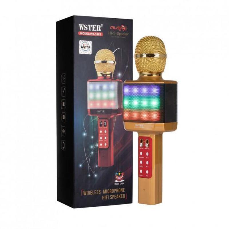 Мікрофон караоке бездротовий wster ws-1828 з led-підсвіткою (4 голоси/usb/bluetooth) золот...