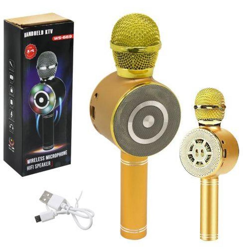 Уценка. беспроводной светодиодный микрофон "караоке", золотистый - мятая коробка
