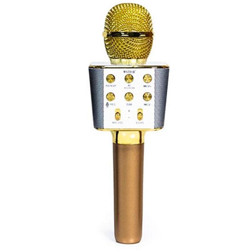 Мікрофон бездротовий Bluetooth Караоке Wster Золотий WS-1688 Це стильний та універсальний пристрій, який принесе вам задоволення від караоке в будь-якому місці. Цей мікрофон поєднує в собі передові технології та елегантний дизайн, забезпечуючи чудовий досвід співу та розваг. Основні характеристики товару: 1. Bluetooth-підключення: Мікрофон обладнаний технологією Bluetooth, що забезпечує бездротовий зв'язок з пристроями, такими як смартфони, планшети або ноутбуки. 2. Функція караоке: Вбудована функція караоке дозволяє вам співати під супровід музики прямо з вашого пристрою. 3. Золотий дизайн: Елегантний золотистий колір мікрофона надає йому стильний та привабливий зовнішній вигляд. 4. Живлення від акумулятора: Вбудований акумулятор забезпечує довгий час роботи мікрофона і зручність використання без постійного заряджання. 5. Регулювання гучності: Можливість регулювання гучності дозволяє вам налаштовувати звучання мікрофона відповідно до ваших уподобань. 6. Універсальність використання: Підходить для використання на вечірках, пікніках, вдома, в автомобілі або де завгодно, де ви захочете підняти настрій піснею. 7. Висока якість звуку: Мікрофон забезпечує чистий і кришталево чіткий звук, роблячи ваші виступи ще приємнішими. Бездротовий Bluetooth-мікрофон Wster Золотий WS-1688 - ідеальний співак для любителів караоке, який додасть веселощі та атмосферу свята до ваших вечорів та заходів. Можете купити вже сьогодні!