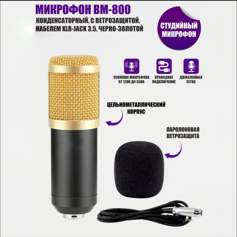Мікрофон студійний конденсаторний універсальний music dj m-800u зі стійкою та вітрозахисто...