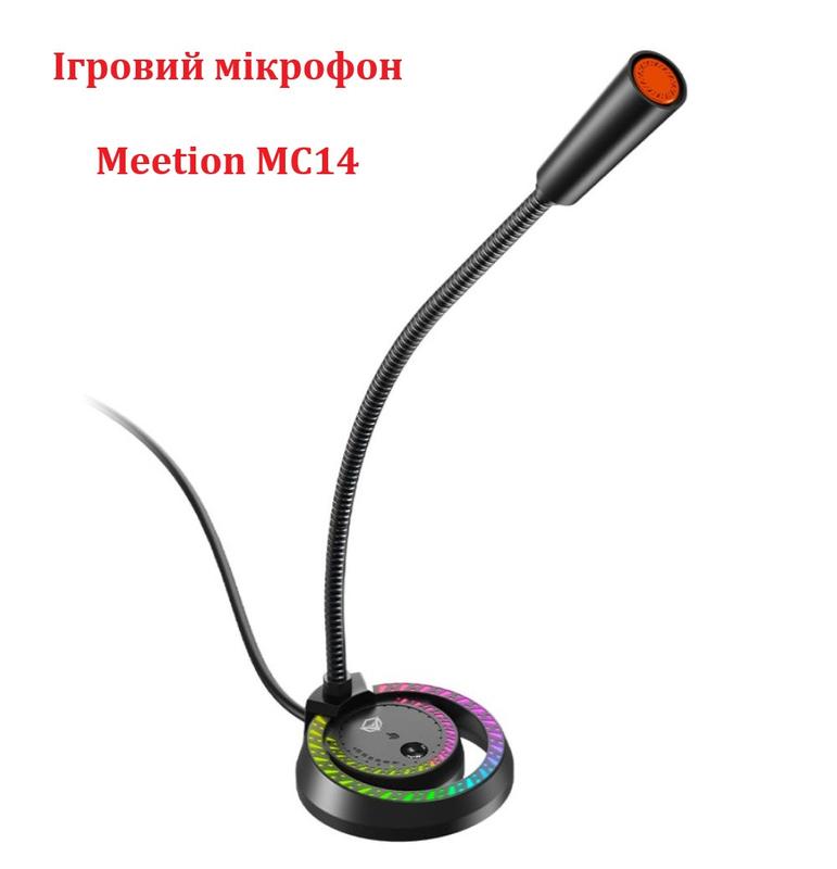 Игровой микрофон проводной meetion mc14 на гибкой шейке rgb usb черный
