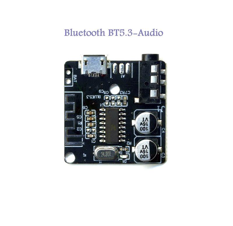 Bluetooth BT5.3-Audio Встраиваемый Bluetooth модуль для приема аудио сигнала, с поддержкой стандарта Bluetooth 5.3 Для работы модуля достаточно подать питание на плату, подключить к выходу наушники/усилитель и подключиться к нему с ПК,смартфона или другого устройства. Характеристики: • Входное напряжение: Micro USB/3,7-5В • Аудио выход: AUX 3,5 мм стерео • Поддерживаемые профили: A2DP/AVCTP/AVDTP/AVRCP/HFP • Дальность приема: 15м • Размеры: 29 х 29 мм • Вес: 5 гр. Chip: AF24C102498-69A2