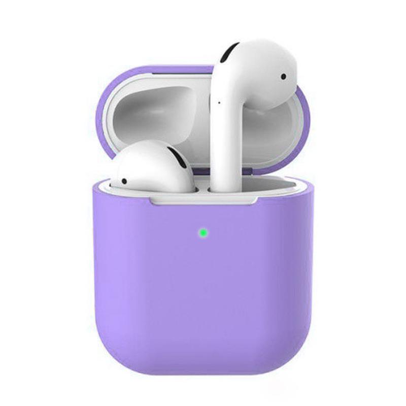 Чохол для airpods/airpods 2 silicone case with apple лавандовий з карабіном