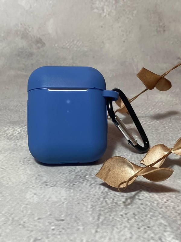 Чохол silicone case для airpods 2 в синьому кольорі з карабіном