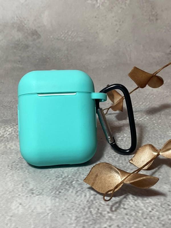 Чохол silicone case для airpods 2 в бірюзовому кольорі з карабіном