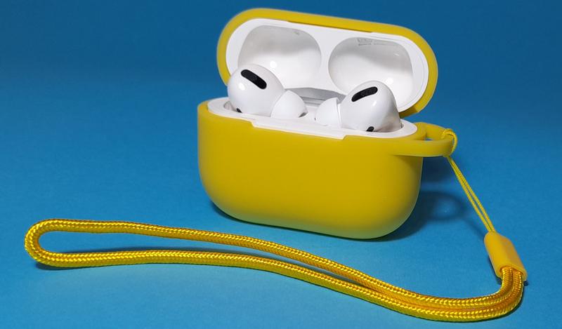 Чехол silicone case для airpods pro с ремешком в желтом цвете