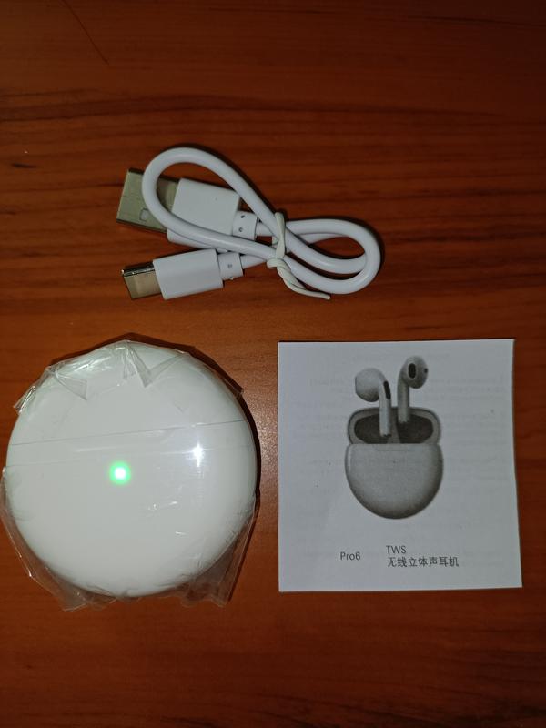 Навушники Bluetooth TWS Pro6 версія блютуз 5.2+EDR радіус дії до 10 метрів залежності від перешкод. живлення від Type-C в комплекті: кейс з акумулятором пара навушників кабель живлення інструкція.