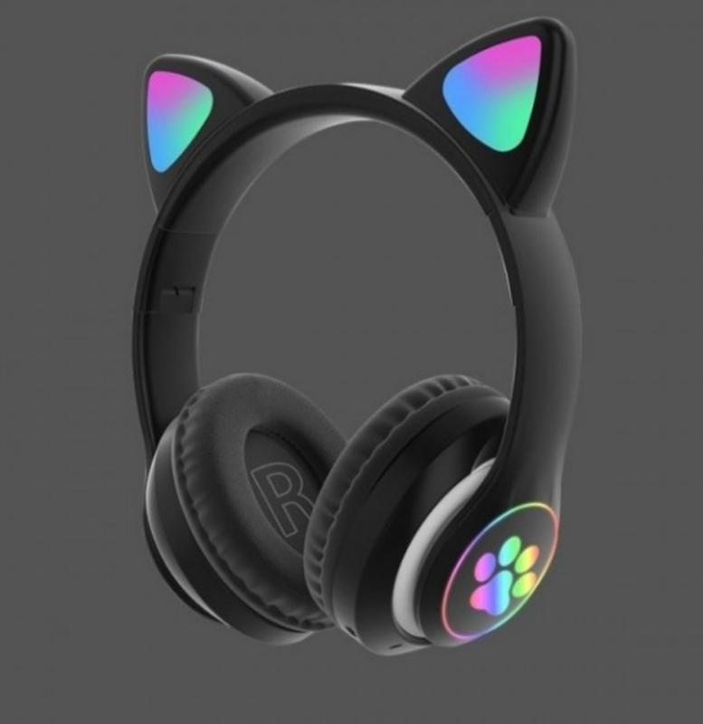 Дитячі бездротові навушники "Котячі вушка" CATear ME1-CE Bluetooth з LED підсвічуванням, плеєр і MicroSD до 32Гб. Чорні. Нові.