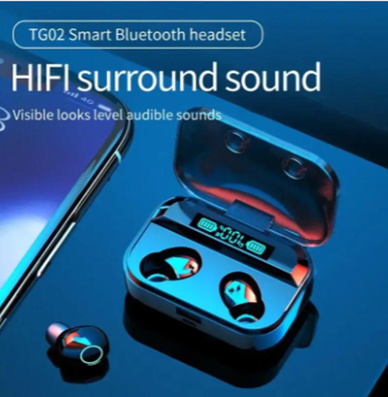 Бездротові навушники TG02 TWS з підтримкою Bluetooth 5.1 і мікрофоном Бездротові навушники TWS TG02 -- це новинка, розроблена спеціально для шанувальників музики та шанувальників спілкуватися з максимальним комфортом. Бездротові навушники із шумозаглушенням обладнані динаміками нового покоління, що видають соковитий, яскравий, насичений звук -- улюблені треки зазвучать по- новому. Особливості моделі: - Стильний кейс із високоміцного пластику призначений для зберігання та заряджання гарнітури, який можна використовувати також як PowerBank для заряджання смартфона, розумного годинника та інших ґаджетів. - Захищені -- навушники захищені від підвищеної вологості, бризок і пилу. - Інформативний дисплей показує рівень заряду акумулятора. - Працюють із будь-якими смартфонами, ноутбуками, планшетами незалежно від виробника. - Працює на базі Bluetooth 5.1, що гарантує приймання сигналу на відстані до 10 метрів. - Заряджається до 100% лише за годину, а повного заряду досить, щоб насолоджуватися улюбленими треками до 5 годин. - Навушники з мікрофоном для розмови зі співрозмовниками -- ви будете приємно здивовані якістю звуку. Комплектація: - бездротові навушники з вбудованим мікрофоном -- 2 шт. - змінні силіконові амбушури -- 2 шт. х 2 комплекти, - інструкція, - кабель, - кейс (PowerBank) з функцією заряджання інших пристроїв.