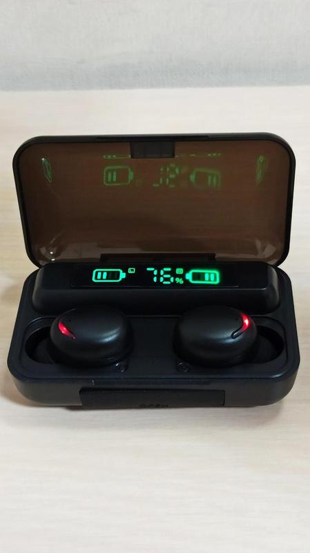 Беспроводная блютус гарнитура, наушники с микрофоном TWS F9 5C, беспроводные вакуумные наушники с хорошим басом с микрофоном Характеристики: Чувствительность: 122±3 dB Тип беспроводной связи: Bluetooth 5.0 Разъёмы: MicroUSB, USB Сопротивление: 32Ω Защита от влаги: ІРХ6 Встроенный микрофон Батарея: 1500 mA⋅h Беспрерывный режим работы без подзарядки: до 4 часов Диапазон: Bluetooth 10 м. Bluetooth наушники F9 версии Bluetooth V5.0 предназначены для активных и стильных людей, так как они позволяют прослушивать музыку, и в то же время переключаться на телефонный разговор одним касанием. За счет удобного сенсорного управления можно регулировать громкость, переключать треки (аудио файлы), ставить на паузу, включать и выключать музыку, принимать звонки. В режиме разговора можно легко выбрать громкость разговора, а также без проблем его закончить. На наушниках есть индикатор работы, зарядки и поиска устройства для коннекта - смартфона или планшета. Индикатор также укажет на то, включены ли наушники, кроме того, сделает Ваш стиль современным и ярким. В комплекте идет бокс, исполняющий роль повербанка для наушников. Чтобы зарядить наушники, необходимо просто положить их в бокс до полной зарядки. Уровень заряда наушников укажут индикаторы. Сам бокс заряжается от блока питания, компьютера, ноутбука, павербанка - индикация также имеется. Для его зарядки необходим кабель Micro-USB на USB, он идет в комплекте к аксессуару. Наушники удобно помещаются в ухе любого размера, так как в комплект идут три набора амбушюр - под разный диаметр уха. Цвет амбушюр соответствует цвету изделия. Комплектация: - bluetooth наушники - 2шт; - бокс (повербанк) - 1шт; - кабель MicroUSB - USB - 1шт; - амбушюры - 3 парных комплекта.