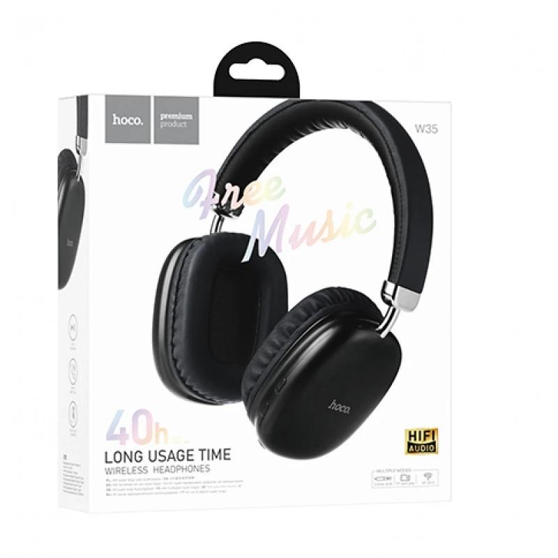Наушники Hoco W35 wireless headphones Навушники Hoco W35 wireless headphones - елегантна та комфортабельна Bluetooth-гарнітура з унікальним дизайном, включаючи підтримку SD-карти та аудіо-кабелю в комплекті. Вбудований мікрофон гарантує чудову якість передачі звуку. Інтегрований слот Micro-SD дозволяє налаштувати розмір навушників по голові та повертати їх для максимального комфорту. Присутність слота для карти пам'яті Micro-SD перетворює навушники на справжній MP3-плеєр, дозволяючи насолоджуватися музикою без необхідності підключення до смартфону або ноутбука. Кнопки керування, розміщені на навушниках, надають можливість відповідати на дзвінки, перемикати треки та регулювати гучність, не виймаючи телефон із сумки. Завдяки діапазону дії в 10 метрах можна вільно розмовляти по телефону або насолоджуватися музикою, переміщаючись по кімнаті. Для заряджання гарнітури достатньо підключити аудіокабель (включено до комплекту) або використовувати USB-порт. Акумулятор забезпечує до 40 годин роботи та до 200 годин у режимі очікування, а час заряджання становить лише 2 години.