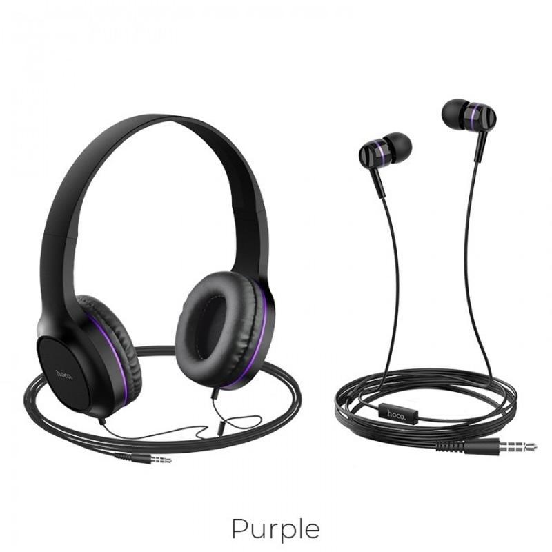Комплект дротових навушників накладні + вакуумні hoco w24 чорні з фіолетовим