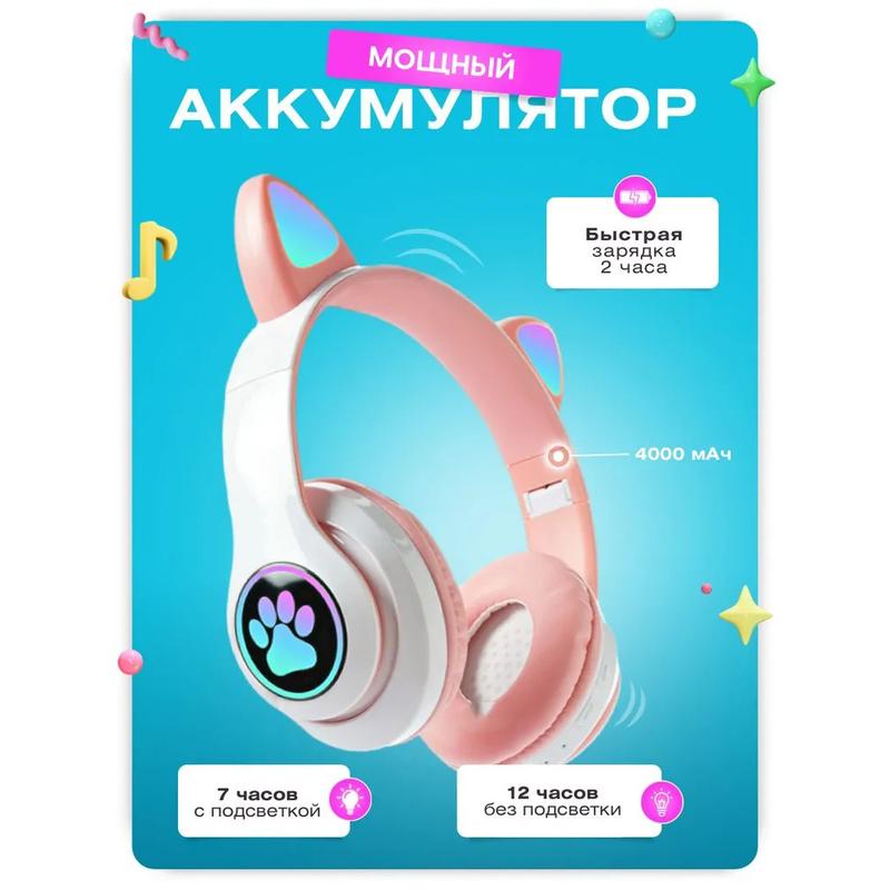 Бездротові навушники з котячими вушками та rgb підсвіткою cat vzv 23m. колір: Рожевий, чор...