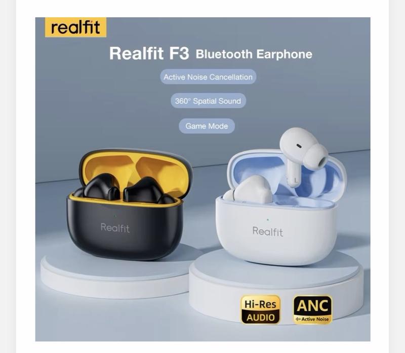 Bluetooth-навушники realfit f3 з активним шумопоглинанням. білі