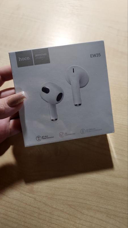 Особливості: Сенсорне керування дозволяє одним дотиком пальця відповідати на дзвінки або керувати відтворенням Завдяки спеціальній анатомічній формі добре тримаються, не випадають із вух при активному використанні Звук високої якості Сумісність з усіма пристроями (Android та Iphone) Навушники автоматично підключаються до телефону коли ви дістаєте їх із зарядного кейсу Навушники автоматично відключаються від телефону коли ви кладете їх у кейс Виклик Siri Характеристики: Бренд: HOCO Модель: EW35 Тип підключення: Бездротовий Радіус дії: До 10м Bluetooth 5.3 Зарядний кейс 250mAh; Гарнітура 30mAh Час розмови/музики: 4 години; в режимі очікування 150 годин Розмір: 51*51*22,1 мм Вага: 36 г