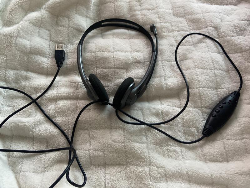 Навушники для роботи за комп’ютером, не тиснуть на голову, регулюються за розміром, мають висувний мікрофон, підʼєднуються через USB. Додаткові фото можу надіслати при потребі.