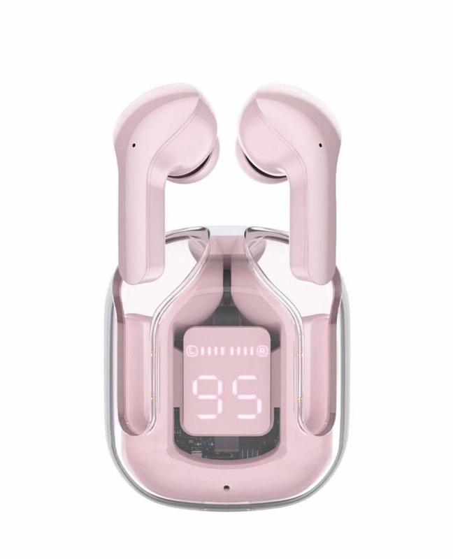 Бездротові навушники TWS T2 з прозорим зарядним кейсом вакуумні bluetooth 5.0 LED цифровий дисплей – вакуумні сенсорні навушники покликані задовольняти найвибагливіші запити покупців щодо якості звуку завдяки використанню найновіших технологій звучання. До списку переваг можна віднести: Бездротове з'єднання: Бездротові навушники забезпечують зручність та свободу руху без необхідності проводів, що зручно у повсякденному житті та спорті. Навушники відносяться до категорії True Wireless, це означає, що у них немає навіть проводового з'єднання між навушниками, що робить їх ще зручнішими та портативнішими. Якість звуку: мають якісне звучання з гарним басом, чистими високими і врівноваженими середніми частотами. Ергономіка: навушники T2 True Wireless Earbuds надійно та зручно розташовуються у вушному каналі, так що ви не втратите їх навіть під час пробіжки. Батарея та час роботи: Ємність акумулятора T2 дорівнює 40 мАг, що дозволить слухати музику без перерви до 4 годин. Захист від поту та вологи: стандарт IP57 дозволяє використовувати їх під час фізичних вправ або під час дощу. Активне шумозаглушення (ANC): Дозволяє блокувати зовнішні шуми та забезпечує більш якісний звук у тихій обстановці. Характеристики: Місткість акумулятора навушника T2: 40 мАг Місткість зарядного кейсу: 250 мАг Версія Bluetooth: 5.0 Дальність прийому сигналу за відсутності перешкод: 10 м Мікрофон вбудований у навушник Стерео звук, Hi-Fi Управління: сенсорне Голосовий помічник: є Робота навушників окремо: так Активне шумозаглушення: є Вологозахист: IP57 LED дисплей: є Індикатори заряду: Еквалайзер: є Час безперервної роботи навушників: 4 годин Час зарядки навушників: 2 год. Час зарядки кейсу: 2 години Зарядний кабель: Type-C Сумісність: Android, IOS, Mac, Windows