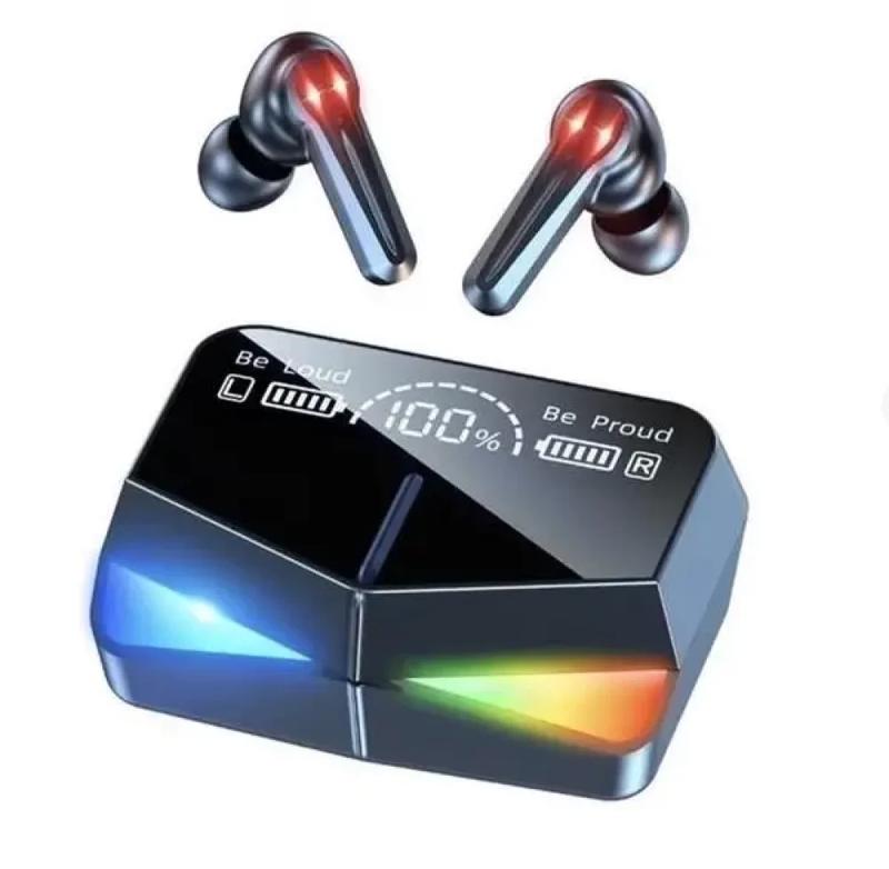 Ігрові бездротові навушники з дзеркальним цифровим дисплеєм М28 — вакуумні сенсорні Вбудований мікрофон Футляр має екран з інформацією про рівень заряду. Кодек: ААС Шумозаглушення Якісний звук Hifi 9D Заряджаються за 2 години Працюють в активному режимі 3-4 години Ємність навушників: 40 мА·год Місткість кейса: 2000 мА·год Кейс можна використовувати як павербанк У комплекті -Кейс для заряджання -навушники -кабель