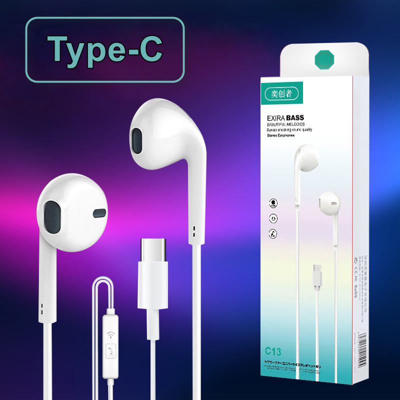 Навушники дротові з мікрофоном c13 type-c white