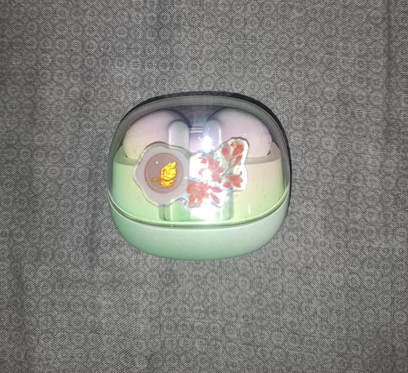 Беспроводные наушники в хорошем состоянии, хорошо работают. Наклейку можно снять Без коробки и зарядки