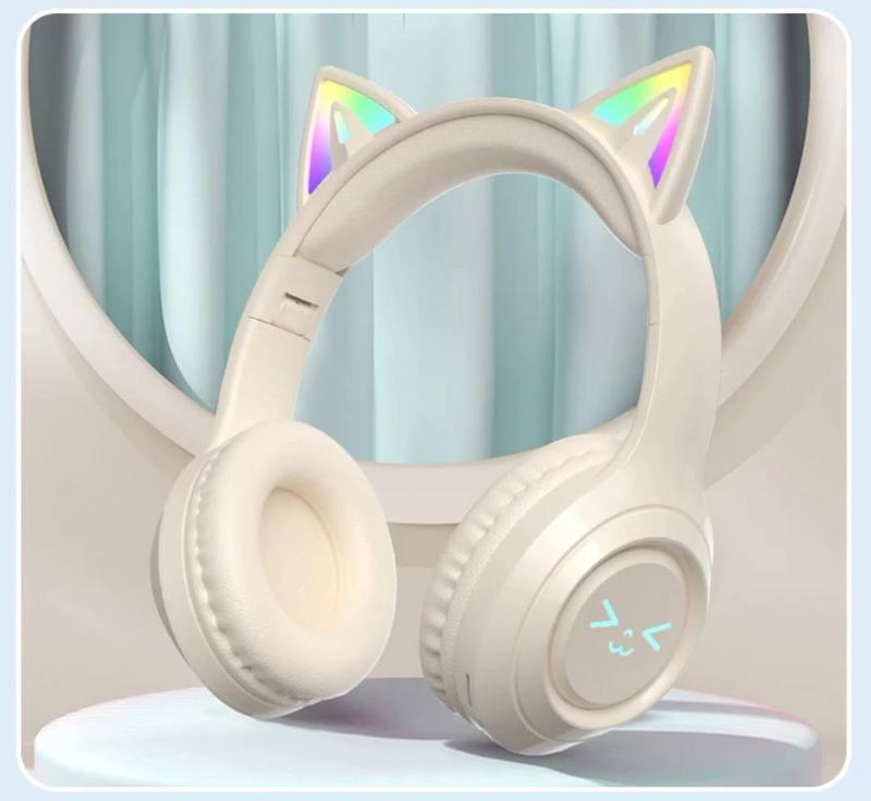 Беспроводные bluetooth наушники с микрофоном и RGB подсветкой Преимущества: - LED-подсветка в ушках - оригинальный и запоминающийся дизайн. - Укреплённый корпус - надёжность и устойчивость к повседневному использованию. - Качественное звучание и шумоподавление. - Подходят для детей от 5 лет и взрослых - регулируемое оголовье. - Совместимы с iPhone, Android, ноутбуками, ПК и ТВ - универсальное использование. - Функция плеера и слот под microSD (до 32 ГБ) - можно слушать музыку без телефона. - Регулятор громкости - удобное управление на корпусе. - Складной механизм - легко брать с собой в дорогу. - До 15 часов автономной работы без подсветки, до 6 - с подсветкой. - ### Технические характеристики: - Подключение: Bluetooth 5.1 - Время зарядки: около 2 часов - Работа: до 6 часов с подсветкой / до 15 часов без - Слот под карту памяти microSD: до 32 ГБ - Материал: приятный на ощупь пластик, мягкие амбушюры Комплектация: - Наушники - Кабель зарядки - Инструкция - Коробка