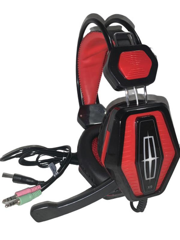 Ігрові навушники з мікрофоном і led-підсвіткою firecam x-9max (чорний-червоний)