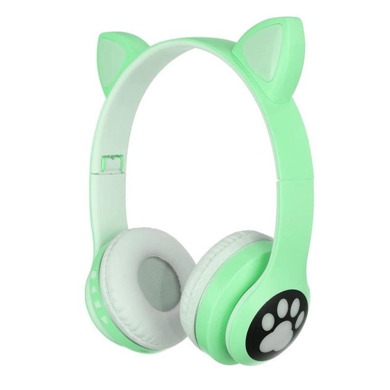 Бездротові навушники з котячими вушками та rgb підсвічуванням cat vzv 23m. колір: зелений