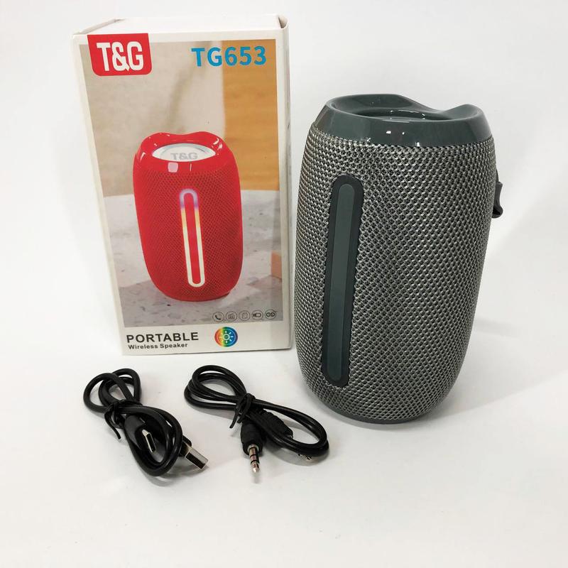 Портативна bluetooth-колонка tg653 usb з ремінцем, гучна колонка для вечірки. колір: сірий...