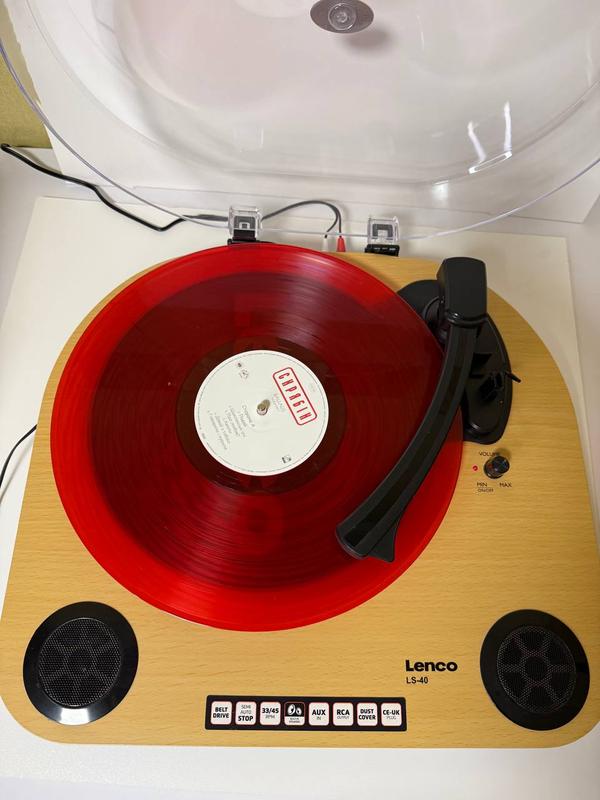 Програвач вінілових дисків з вигнутим тонармом та картриджем MC. Має вбудовану акустику та кришку. Одне кріплення на кришці зламане. Проте це не заважає відривати та закривати. Підключення: RCA-гнізда, mini jack 3.5 мм Вага: 3,32 кг Розміри: 420×395×125 мм Стильний дизайн, зручний для прослуховування вдома. Компактний та готовий до використання. Коробки виробника немає. Колонки до них окремо. Відео скину окремо по запиту.