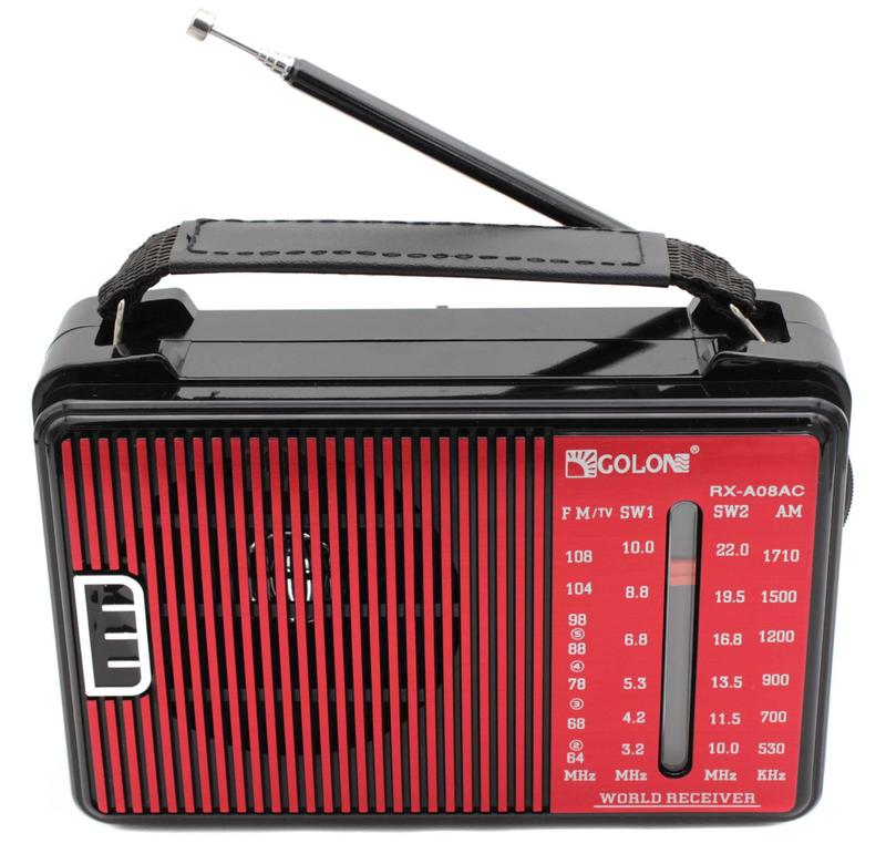 Радиоприемник Golon RX-A08AC Компания Golon славиться своими радиоприемниками, большой ассортимент товара с самыми различными видами радио. Радиоприемник Golon RX-A08AC модель с очень приятным видом, хорошими функциями и конечно же доступной ценой. Функций этого типа радио: Воспроизведение таких типу чистот как - AM, FM, TV, SW1, SW2. Радио Golon идет как в сеть 220V так и 2 R20 батарейки. Наш Инетернет-Магазин "Тут-ОПТ" предлагает большой ассортимент радиоприемников и разнообразной акустической системы.