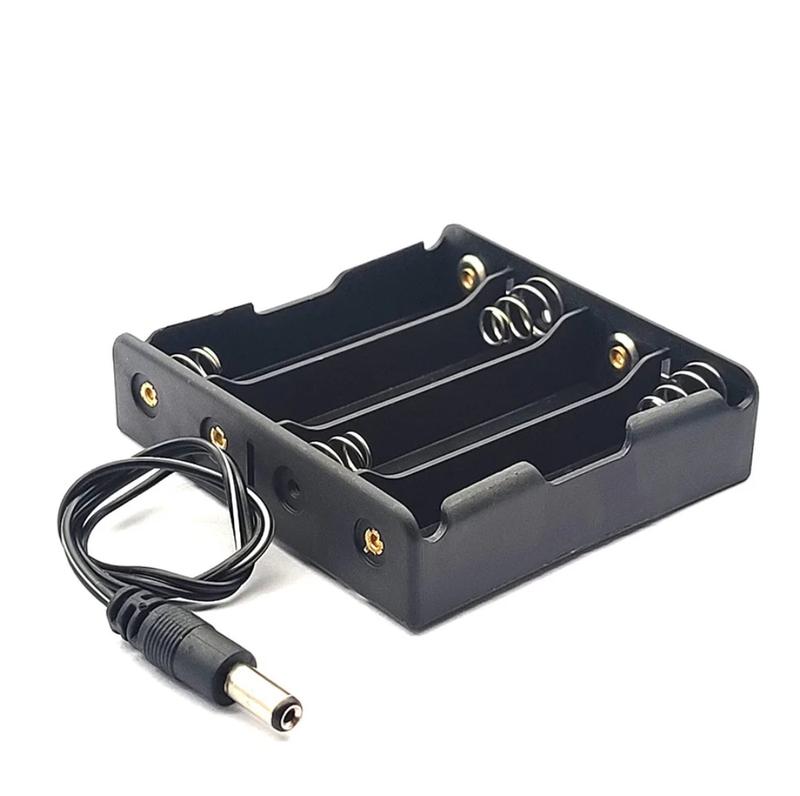 Тримач акумулятора 4x 18650 Батарейний відсік серії кейс для зберігання зі шнуром 5,5х2,1 мм DIY - Тип товару: Коробка тримача батареї 18650 - Матеріал: пластик + метал - Колір: чорний - Тип: холдер на 4 слоти - Штекер постійного струму: 5,5х2,1 мм - Розмір: - 7,5 х 8 см (4 слоти) - Довжина кабелю: 20 см - Підходить для батареї 18650 3,7 В (не входить в комплект)
