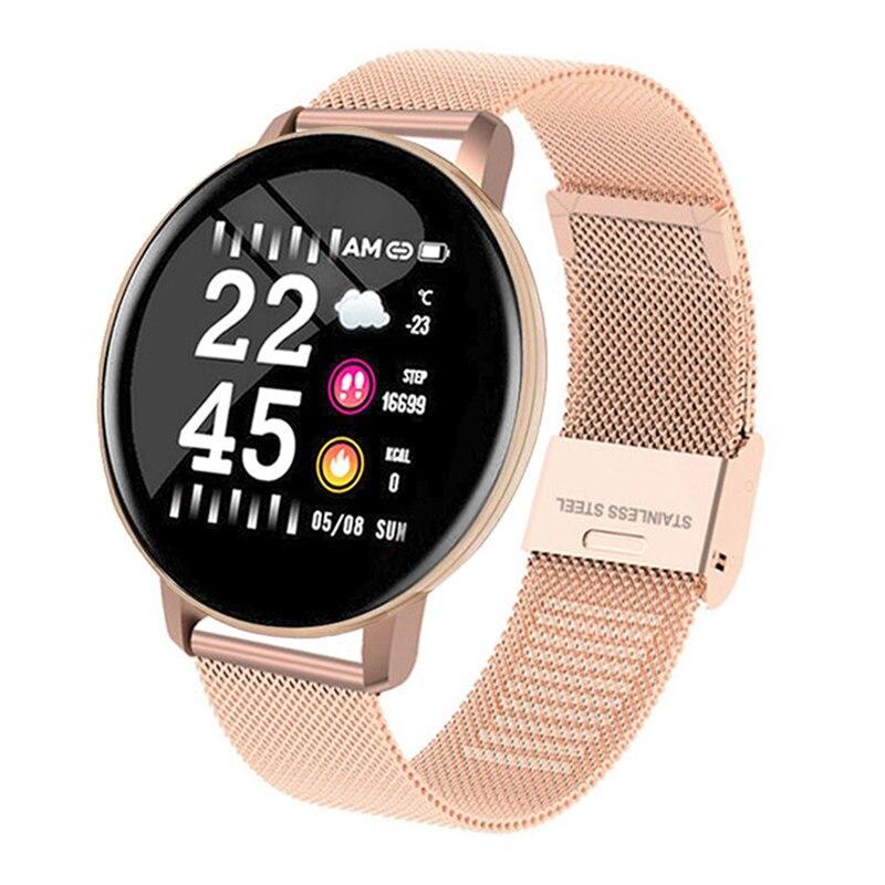 Розумний смарт годинник Smart Watch VB23W - елегантний дизайн з круглим металевим корпусом доповнений сенсорним OLED-дисплеєм з роздільною здатністю 240*240 пікселів та діагоналлю 1,54 дюймів. Гаджет має велику кількість датчиків: моніторинг сну, датчик артеріального тиску, крокомір і датчик серцевого ритму. На тильній стороні корпусу є оптичний пульсометр, який буде корисним не лише на тренуваннях, а й у звичайні дні. Управління меню відбувається за допомогою сенсора, натискання на кнопку внизу екрана, інших фізичних кнопок в даній моделі не передбачено. Завдяки стильному дизайну можна використовувати як модний аксесуар на вихід або на кожен день. За рахунок невеликих розмірів та енергоефективного процесора смарт-годинник може тривалий час підтримувати роботу в автономному режимі до 120 днів. Акумулятор ємністю 170 мА | год в активному режимі може тримати заряд більше 7-10 днів. Сумісність з Android та iOS. Основні переваги: Ергономічний дизайн. Металічний корпус. Управління меню здійснюється за допомогою сенсора - натисканням кнопки внизу екрану Зручний елегантний знімний ремінець. Інформативний екран. Унісекс. Металевий ремінець. Сумісність з Android та iOS. Захист від потрапляння вологи. Відмінна якість. Найприємніша ціна. Функції: Дата. Час. Шагомір. Лічильник калорій. Будильник. Моніторинг серцевого ритму. Моніторинг сну. Моніторинг артеріального тиску. Розумне нагадування. Повідомлення про дзвінок. Повідомлення про вхідні дзвінки, СМС, Соц.мережі. Дистанційне керування камерою смартфона. Увімкнення екрана під час перевороту руки. Ступінь захищеності від вологи та пилу: IP57. Основні характеристики: Вигляд: Розумний смарт годинник Smart Watch. Кольоровий екран 1.3 дюймів. Місткість акумулятора: 170 mA/h. Підключення через Bluetooth. Металевий ремінець - дихаючий, гіпоалергенний. IP67. Функції: вимірювання серцевого ритму/артеріального тиску/ моніторинг кисню крові (ці функції призначені лише для довідки та не можуть використовуватися з медичною метою), автоматичний контроль сну. Повідомлення про дзвінки / SMS-повідомлення. Шагомір для відображення кроків, калорій, відстані, частоти серцевих скорочень, темпу та тривалості. Час заряджання: 2 години. Мова: Російська, англійська. Bluetooth 4,0, сумісний з Android 4.4 та вище, ios 5,0 і вище. Дизайн: Корпус: пластик. Ремінець: металевий (дуже зручний, затягує за розміром пензля). Розмір ремінця: 25.5 х 20х 2.3 мм. Вага: 45 р. Колір: Золотий. Дисплей: Вигляд: Сенсорний (кнопка)/рефлективний/кольоровий. Круглі OLED кольоровий дисплей. Діаметр: 1.3 дюймів (25 мм). В комплекті: 1 х Датчик-годинник. 1 х Ремінець (металевий). 1 х Зарядний пристрій. 1 х Інструкція. 1 х Фірмова коробка. * Фітнес браслет з тонометром не є медичним приладом. Всі дані надаються тільки для ознайомлення і не можуть бути використані для корекції лікування або бути приводом для прийняття таблеток. ** Зовнішній вигляд товару може трохи відрізнятися від фотографій на сайті залежно від партії.