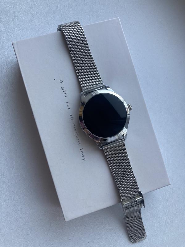 Розумний годинник KingWear KW10 Pro. З коробкою, є зарядний шнур. Синхронізується з телефоном через додаток, який можна завантажити через qr-код на коробці. Простий у використанні. Вимірює сон, пульс, тиск, рахує кроки та витрачені калорії. Браслет легко замінюється, потрібну довжину також легко налаштувати. На руці виглядає стримано та елегантно. В ідеальному стані, носився мало.